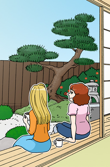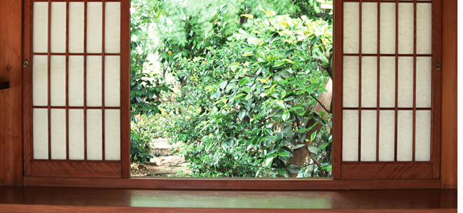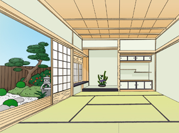Hori-zataku is a low table placed over a hole in the floor of a Japanese-style room so that you can set your legs down. You can sit on tatami without getting down on your knees. Low eyes (eye line) would be the best height to see tokonoma and the garden. |