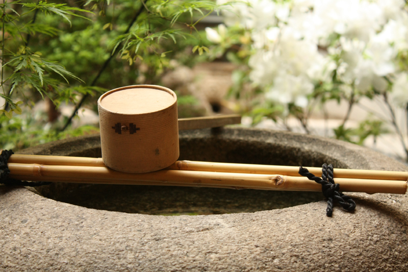Ladle out water into the cup of this dipper and purify hands before you enter the tea room. |
