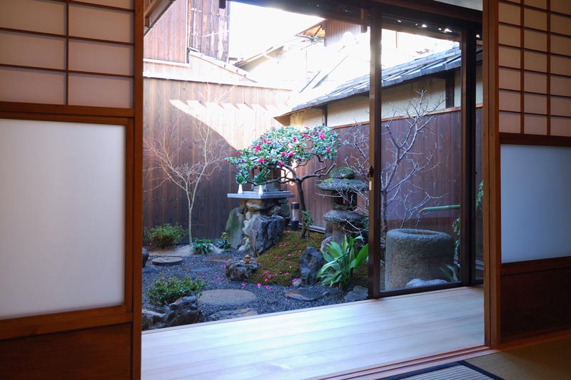 坪庭と呼ばれるのはそのためです。それでも、空間を生かすために植木や石を配置して、小宇宙を作り出すのです。