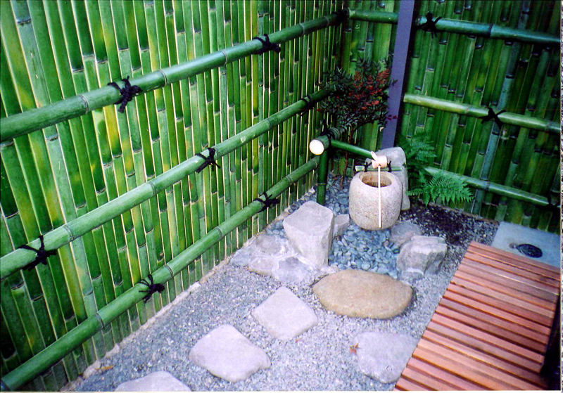 施工直後の写真のため青竹の色が冴えているが、1年くらいで、明茶色に変色する。