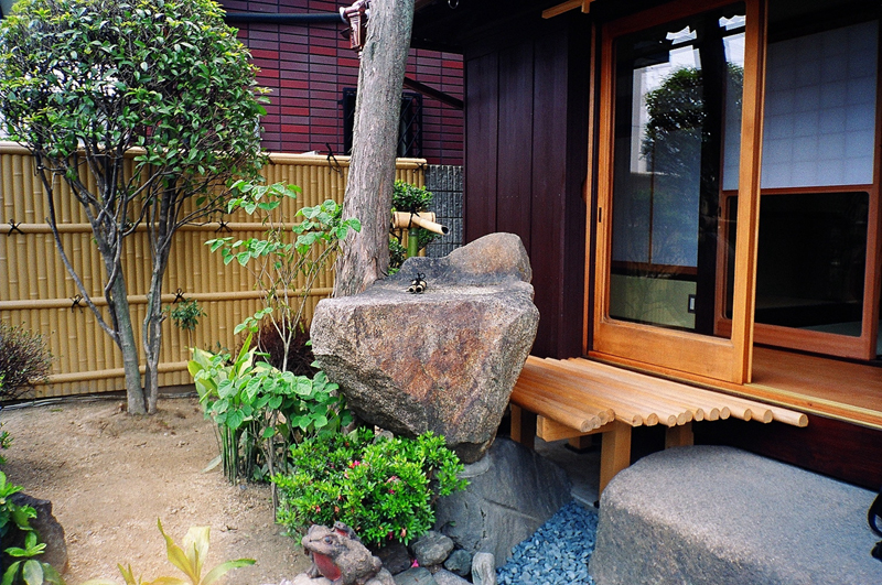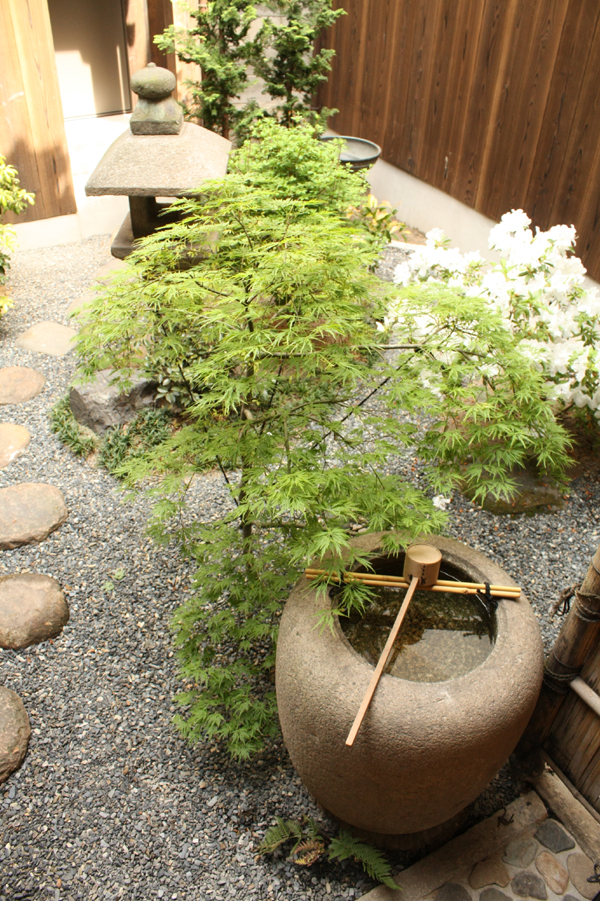 前石、水鉢の配置は茶道のしきたりに従っている。