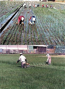 品種改良を重ねた細口で長い藺草を株分けし、厳寒期に植えつけます。