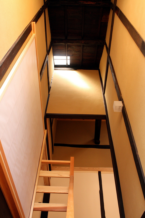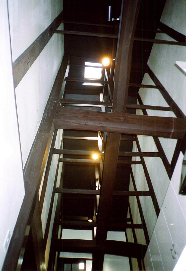 天窓からの光が階段越しに井戸に降り注ぐ。