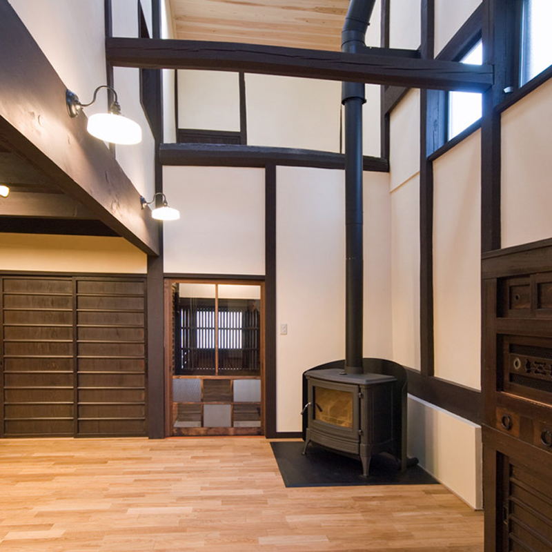 建物全体を断熱材で覆い、ストーブ1ヶで全館暖房とする。