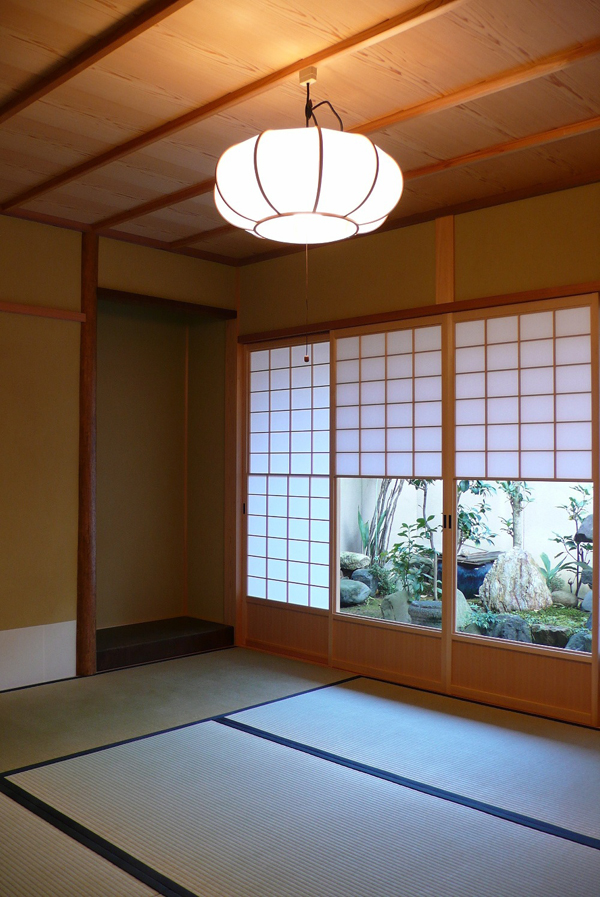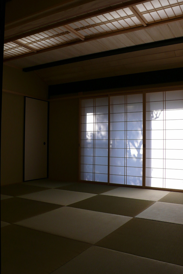 竹の奥には紙張障子がはまっている。