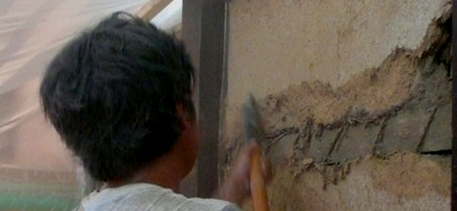 | 昔から、左官職人の世界では、手を取って教わったり、教室で講義を聞くといった養成訓練ではなく、ただ先輩や親方が作業する傍らで見よう見真似で習得するのが普通であった。 材料は自然素材であってどこでも手に入るが、逆にいうと均質なものが手に入りにくく職人の感性にたよる世界なのだ。 粘土が高ければ鏝について割れやすく、逆に○(草冠に切る:スサ)が多ければ表面が平らに均しにくい。 「盗んで覚えろといわれましたね。誰に聞いてもコツとか急所というものは教えてくれず、秘伝であるから簡単に他人に教えられるかということだったと思います」 特に茶室の壁は難しい。 通常、京壁聚楽土を塗るが、これは、茶道が求める侘び寂びの陰翳に通じるものがあるからだ。 成分として含まれる鉄分が酸化し表面錆が発生するものの、塗ってすぐに侘びた味が出てくるものではなく、何度も炉に窯を掛けて初めて壁が良くなっていくものだという。 |