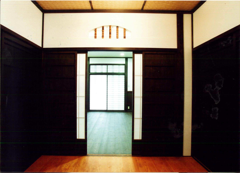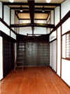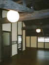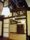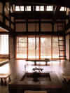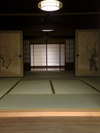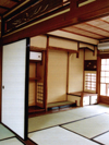The sunlight is taken in from the blow-by. Kitchen is located in the front backside. There is a large papered shouji(sliding doors) on the right. |