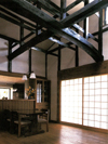 In the upper front, there is five long and thin window for lighting and drafty. It is called shitaji-mado, because you can see the foundation of the window structure which is made by soot-colored bamboo(susudake). |