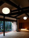 Shouji sliding doors and sash doors are installed just inside the wall. You can relax to see planting garden and a Japanese lantern.Chestnut tree boards are laid on floor. |