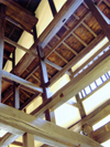 Omoyagi(horizontal woods supporting the roof) and Nobori-joists are combined together. For a wall, re-mixed clay are applied twice. |