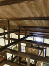 Depending on a design of attic space, it is possible to see the wooden frames from the top. Cedar boards are used as roofing board. |