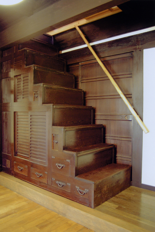 Staircase itself is a type of the box-using wall/stairs rack, and it is possible to move. Everyday things are stored to make use for life. |