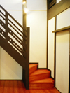 A master carpenter designed this stair. A mixture of Bengala(Indian red) and polishing powders are applied for this floor to finish in red. |