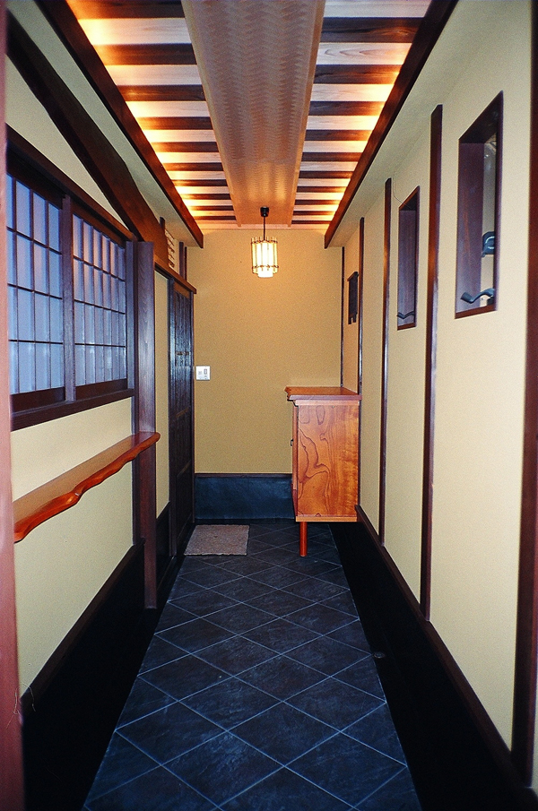 There is a large Hinoki step on the right. In Japan, the first floors are raised up to prevent humidity from housing. This step eliminates difference in level on the floor. |
