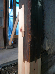 | Our boss was the specialist of handling woods so that everybody called him Kigorosi-Isamu(his nickname). All woods he pounded could be fit into the posts perfectly. For example, grinders , posts and crossbeams inserted into the fire box in traditional Japanese lantern etc. Those are the opportunity for Machiya carpenters to show their skill. Joints or connections which had been made carefully by skillful carpenters are still perfectly fit with a long time. |